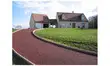Chemin d'accès avec forte pente réalisé en émulsion rose.Pose de bordures boréals sable